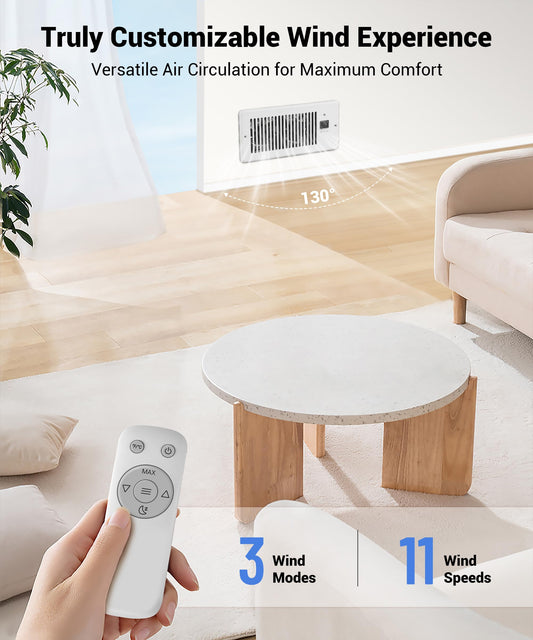 Window Register Booster Vent Fan For 4" x 10" Register Hole, Vent Booster Fan with LCD display & Thermostat,11-Speeds Household Ventilation Fans with Remote,Air Vents Fans Booster for Room, Home