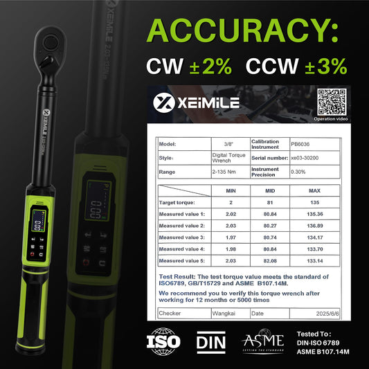 XEIMILE Digital Torque Wrench 3/8"Drive-1.5-99.6Ft.Lb/2.02-135N.m,Electric Torque Wrench With Vibration Buzzer LED Indicator,±2% Accuracy Five Units for Bike Motorcycle Car Auto Repair,DIY,Green Black