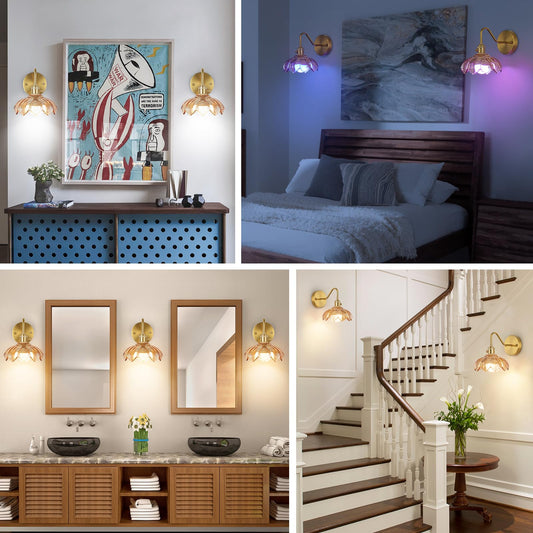 EIDEARAY Vintage Glass Sconces, Battery Operated Wall Light with Remote, Rechargeable Wall Sconces RGB, No Socket Required, Easy to Install, Vintage Wall Sconce for Bedroom, Hallway, Aisle