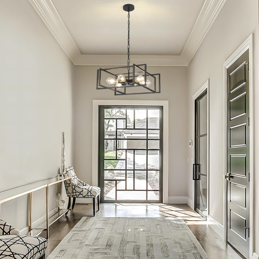 Febeleven 19.7" Matte Black Industrial Pendant Light, Hight Adjustable, 6-Lights Rustic Vintage Metal Chandelier Light Fixture for Kitchen Island Hallway Dining Room