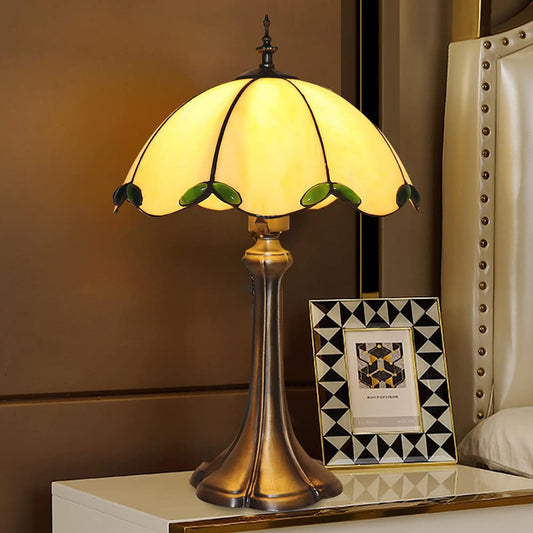 YingJu Tiffany Style Table Lamp,Beige Stained Glass Lamp,Vintage Lamp,12 Inches Wide,for Bedroom,Living Room,Home Office (Including LED Bulbs)