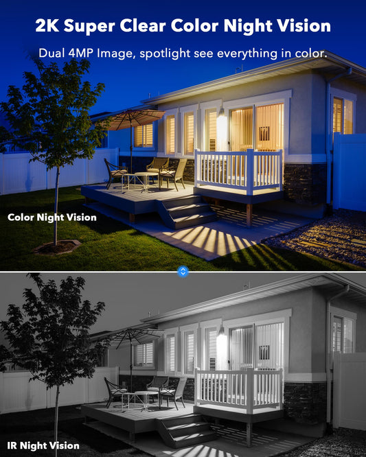 Camcamp Dual Lens Security Cameras Wireless Outdoor, 2K WiFi Camera for Home Security, 360° View, Plug-in Power, Auto Tracking, Color Night Vision, Two-Way Audio, 24/7 Record