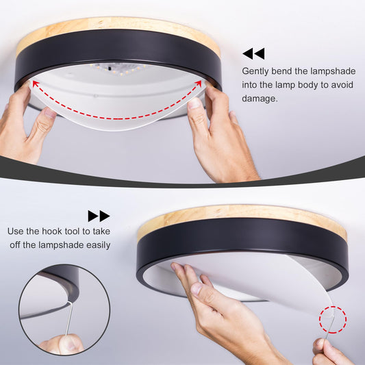 Modern LED Ceiling Light, Dimmable Wood Flush Mount Ceiling Lighting Fixture, 5CCT Round Wood Close to Ceiling Lamp for Kitchen Hallway Bathroom Office Laundry Room Entryway Nursery(White& 15.75 in)