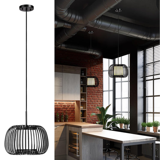Black Chandeliers Ceiling Light Fixture, 13.7" Modern Chandelier Drum Metal Frame Pendant Light, Adjustable Hanging Chandelier for Over Table Dining Room Entryway Kitchen Island Living Room(1 Pack)