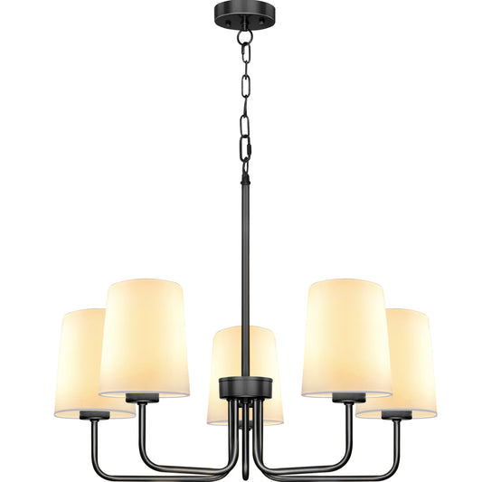 Laiebri Farmhouse Chandelier, 5-Light Black Chandelier with White Fabric Shade, Height Adjustable Modern Dining Room Light Fixture with E26 Base for Bedroom Foyer Hallway Entryway Kitchen Living Room