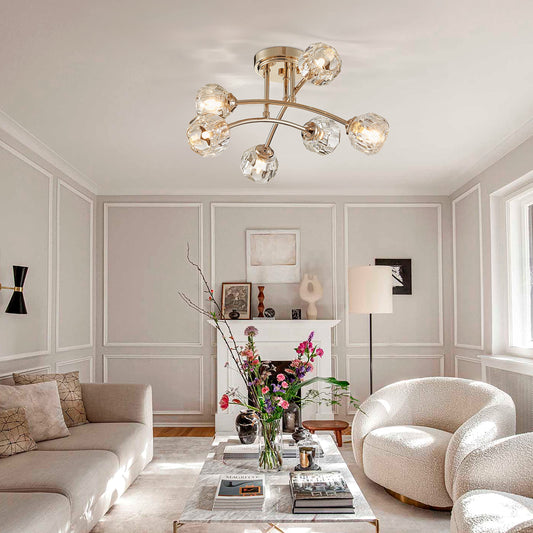 AGV LIGHTING Modern Spuntnik Crystal Ceiling Light Fixture, Semi Flush Mount Ceiling Light, G9 Base 6-Lights, D16 x H10, Clear Crystal & Shining Gold Finish Metal Frame