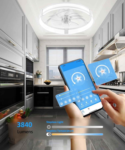Smart Bladeless LED Ceiling Fan with Lights & Remote - 20" Black Low Profile Flush Mount for Bedroom