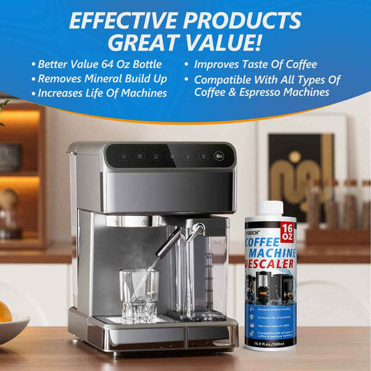 4 Pack Coffee Machine Descaler Cleaner -16 Uses,Descaling Solution for Nespresso Breville Keurig Jura &Delonghi - Coffee Machine Cleaners For All Coffee Makers & Espresso Machines,Glass Pot Cleaner