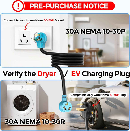 30 Amp UL Listed 25ft Dryer & EV Extension Cord - NEMA 10-30P for Tesla Model 3/X/Y/S