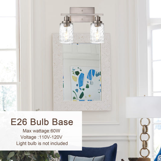 MELUCEE Indoor Wall Sconces Brushed Nickel with Clear Hammered Glass, 2-Light Modern Bathroom Vanity Light Wall Mount Lamp for Mirror Cabinets Powder Room Dressing Table (Patent No.: US D963914 S)