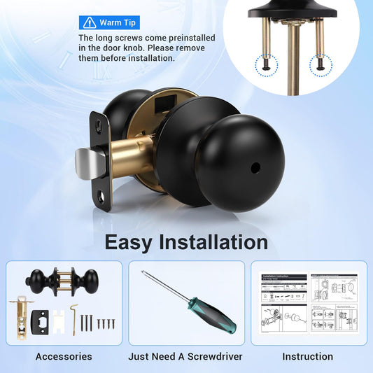 KNOBWELL 8 Pack Privacy Door Knob for Bathroom or Bedroom Door Knobs, Round Interior Door Knobs, Indoor Door Knob, Keyless Black Door Knob with Lock, Door Handle Lock for Interior Doors, Matte Black