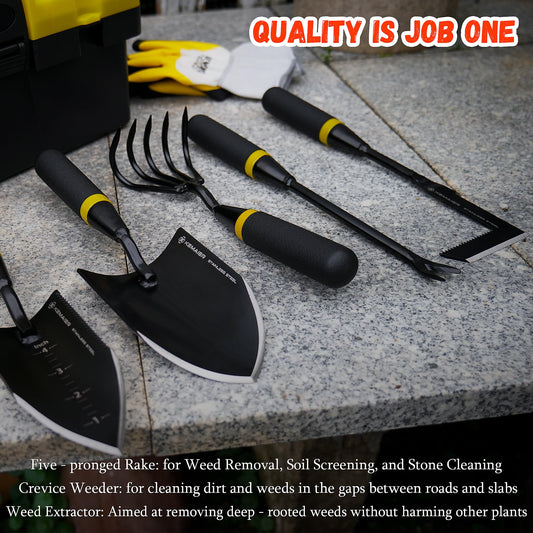 Kemaier 6-Piece Garden Tool Set with Storage Box, Heavy Duty Stainless Steel Gardening Hand Tools for Planting Weeding Digging, Includes Trowel, Shovel, Cultivator, Weeder, Pruner and More
