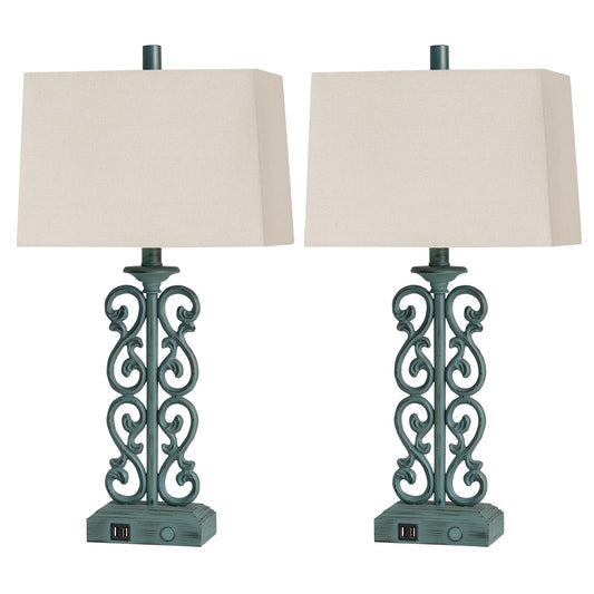 25" Set of 2 Touch Vintage Resin Table Lamps for Living Room, 3-Way Dimmable Nightstand Lamp with 2 USB Ports, Farmhouse Rustic Bedside Lamp for Entryway Bedroom End Table, 2 LED Bulb Included