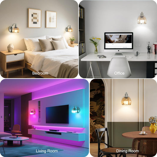Rechargeable Battery Operated Wall Sconce Set of Two with Amber Glass Lampshade, Wireless Wall Scone Decor with Remote Control, 15 Colors Brushed Nickle Wall Light for Bedside Hallway Bedroom Doorway