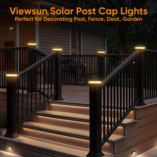 Viewsun 4x4 Solar Post Cap Lights, 16 Pack 3 Color Modes Fence Post Solar Lights Outdoor, Waterproof Solar Powered with 72 LEDs, Decorating for Fence, Deck, Garden
