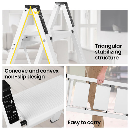 FAHKNS 4 Step Ladder, Aluminum Folding Step Stool with Anti-Slip Sturdy and Wide Pedal, Portable Space Saving Closet Step Stool for Home and Kitchen, Step Stools for Adults, White, 330Lbs