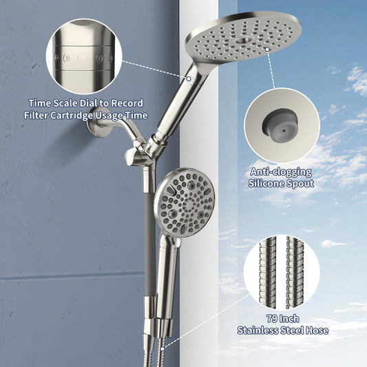 HANLIAN Filtration Shower Heads with Handheld Spray Combo, High Pressure Rainfall Shower Head with Handheld Combo, Filtered Dual Shower Head with Hand Held, Double Shower Heads (Brushed Nickel)