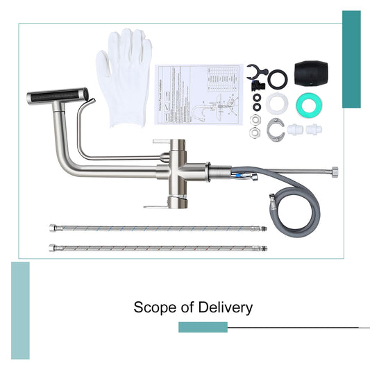 KINKIB Waterfall Kitchen Faucet with Filter - Pull Down Kitchen Faucet with 4 Spray Modes, RO System Compatible, Dual Handle Lead-Free Brass Design, Brushed Nickel
