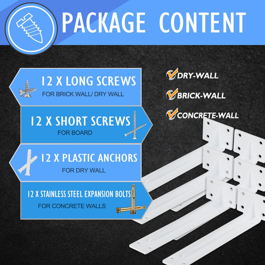 CLT Shelf Bracket( White) , 18” Quarter Inch (1/5") Thick- Max Load: 550 lb Rustic Industrial Modern Farmhouse Heavy Duty Corner Brace Joint Right Angle Bracket for DIY Table Bench, Pack of 6