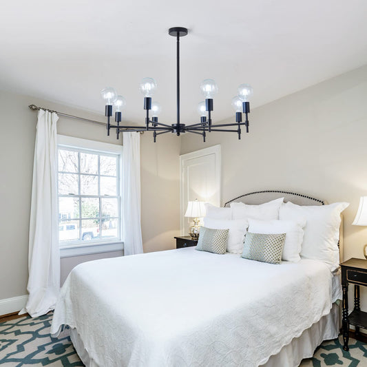 ASGYISA 8-Light Black Sputnik Chandelier Matte Industrial Flush Mount Ceiling Light Fixture Metal Modern Pendant Light for Farmhouse, Bedroom, Kitchen, Dining, Living Room, Island