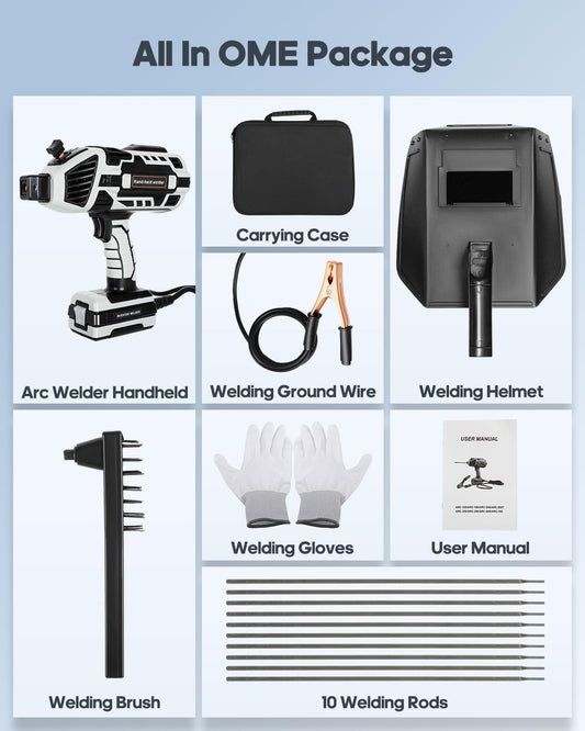 Handheld Welder Machine, 110V Portable Welding Machine with IGBT Inverter 6 Variable Current Adjustment 20-120Amp Welding Output Handheld ARC Welding Gun for 1/16"-1/8" All Size Welding Rod