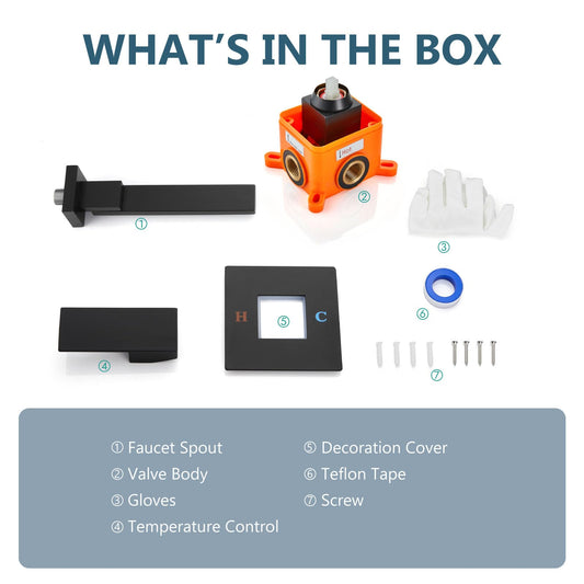 Aolemi Matte Black Wall Mount Bathtub Sink Faucet Tub Filler with Extra Long Rotating Tub Spout One Hole Single Handle Rough-in Valve Included Bathroom Basin Mixer Tap, B0BFWTPCMB