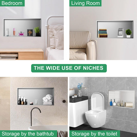 SaniteModar Shower Niche, Stainless Steel Shower Niche 12" X 24" No Tile Needed, Recessed for Bathroom Storage, Brushed Silver (Brushed Silver, 12x24)