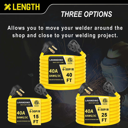 LAVANDINO 25FT 250 Volt Welder Extension Cord 8 AWG for 40 Amp, 8 Gauge Power Extension for Welding Machine NEMA 6-50P to 6-50R