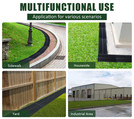 Natotela 6 Pack Polymer Plastic Channel Drain Grate-19.7x9.8x1 in Durable Trench Cover,Total Length 118 in Polymer Drain Strainer,Outdoor Drain Grates for Yard Fence Sidewalk Farm Houseside
