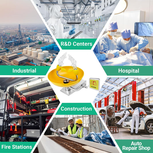 Crystmetal Eye Wash Station, Wall Mounted Emergency, Portable Emergency Eyewash Stand Eye Irrigation Sign, 304 Stainless Steel, Enhanced ABS Surface Coating