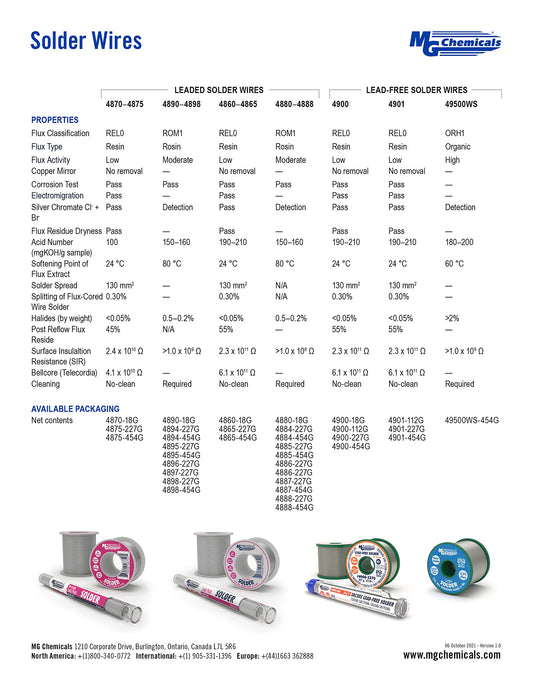 MG Chemicals - 4900-227G SAC305, 96.3% Tin, 0.7% Copper, 3% Silver, No Clean Lead Free Solder, 0.032" Diameter, 1/2 lbs Spool
