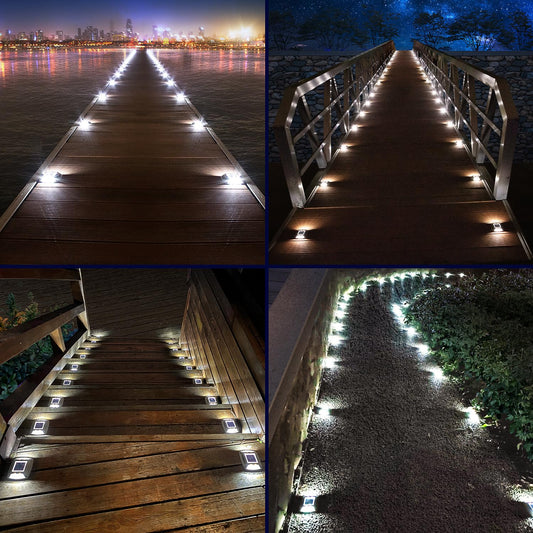 Solar Driveway Lights 12 Pack, Solar Powered IP68 Waterproof Dock Lights, 4 LED Driveway Markers Deck Light for Dock, Pathway, Walkway, Sidewalk, Garden, Yard, Stair, Marine Use (White)