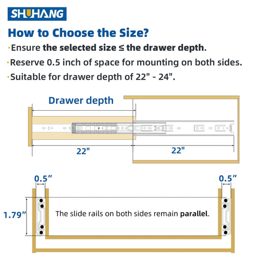 SHUHANG 10 Pair Full Extension Drawer Slides 8 10 12 14 16 18 20 22 24 Inch Ball Bearing Rails 100 lb Load Capacity Side Mount Cabinet Dresser Glides Wardrobe Kitchen Trash Can Slider Runners Silver