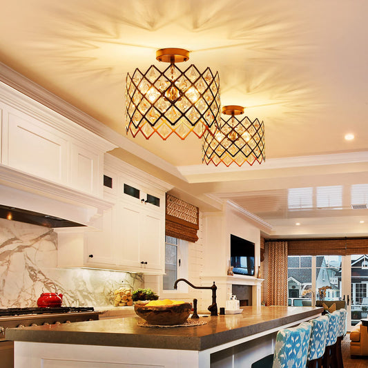 WUZUPS Crystal Chandelier 3-Light Semi-Flushmount Ceiling Light Modern Lighting Fixture for Bedroom Storageroom Hallway Bar Kitchen Dinning Living Room Bathroom, 13.4" Wide 11" High, Oil Rubbed Bronze
