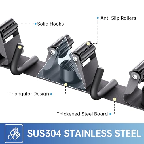 ZONGOOL 2 Pack Broom Holder Wall Mount, 4 Racks and 5 Hooks Mop Hanger Wall Mount Broom Organizer Stainless Steel Heavy Duty Garage Tool Racks for Home Kitchen Garden Laundry (Black)