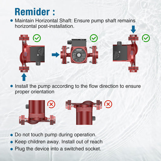 CrestWave 110V Circulation Pump, 3-Speed Adjustable 13 GPM Hot Water Recirculating Pump, Circulator Pump for Water Heater with 3/4" FNPT Flanges & Kit, for Boiler, Solar, Hydronic Heating Use, Red