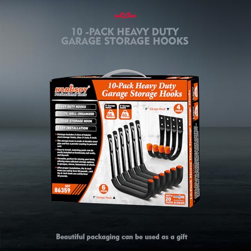 HORUSDY 10-Pack Garage Hooks, Utility Hook, 9" & 6¡± Garage Heavy Duty Wall Hook for Bikes, Kayak and Hanging Ladders