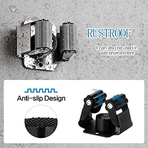 24PCS Broom and Mop Holder, Heavy Duty Garden Tool Organizer Rack Rake and Shovel Handle, Stainless Steel Mop Hanger. Wall Mounted with Screws.Matte Black