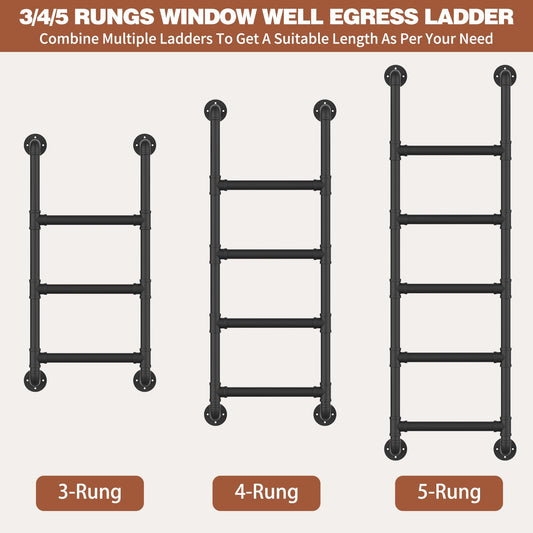 4-Rung Wall Mounted Metal Step Ladder, Basement Window Well Egress & Fire Emergency Escape Ladder, for High Entrance Attic Egress Ladder, Bunk Bed Climbing(355LBS Load Capacity, Matte Black)