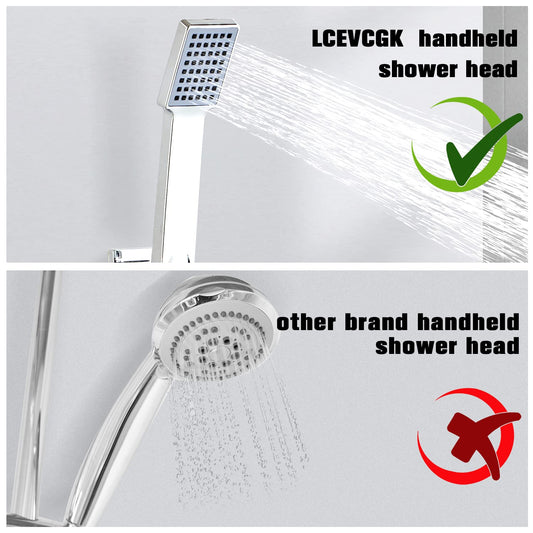 LCEVCGK Shower Head - Shower Faucet Set Square Shower Combo System with 8'' Rainfall Shower Head Wall Mount Handheld Shower, Stainless Steel with Chrome Finish Bath Shower Head,Chrome