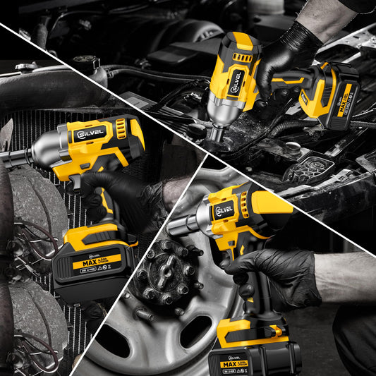 SILVEL Cordless Impact Wrench, 480 Ft-lbs (650N.m) Impact Gun 1/2 inch, 2 * 4.0Ah Battery Powered Brushless Impact Wrench with 6 Sockets, Fast Charger
