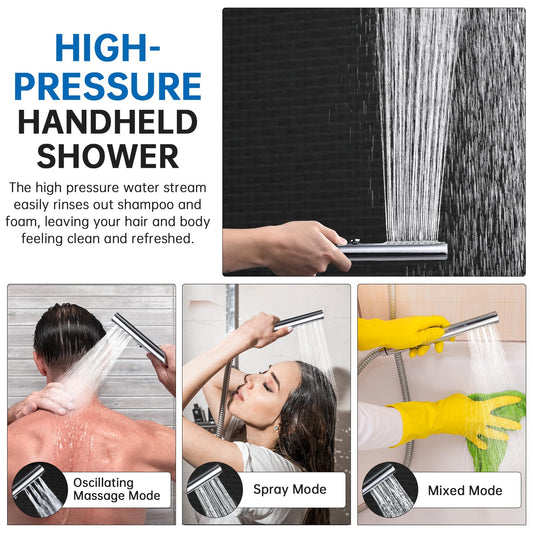 G-Promise All Metal Shower Diverter with Low Holder, Extended 13.5 Inch, Includes Rain Shower head, 3-Function Hand Shower with Massage Mode, Stainless Steel Long Hose (Chrome)