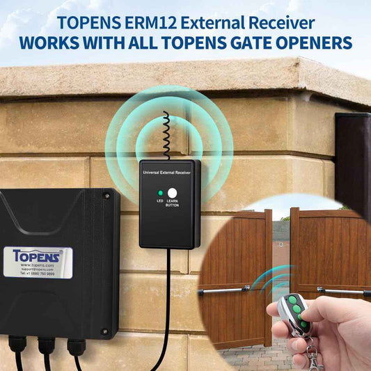 TOPENS ERM12 Universal Gate Opener Receiver & 2 Remotes - Automatic Swing & Slide Accessory