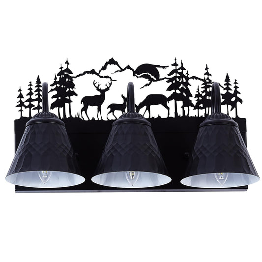 Rustic 3-Light Black Vanity Light Fixtures with Deer Design, E12 Base Farmhouse Bathroom Lighting for Mirror, Cabinet, or Dressing Table (Small, Bulb Not Included)