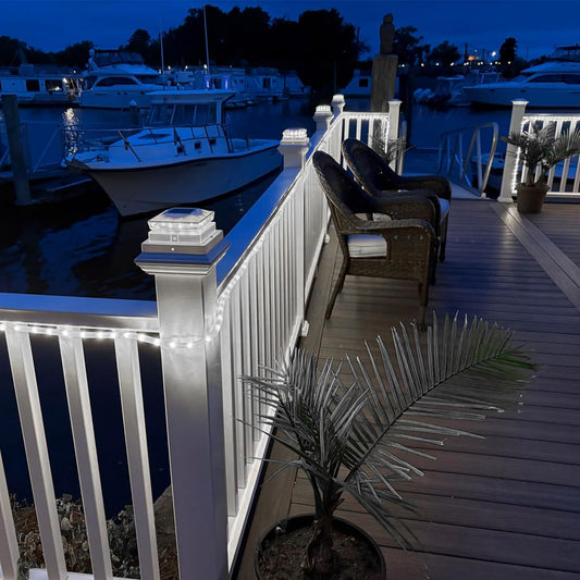 Solar Post Cap Lights, 6500K Cool White IP65 Waterproof Solar Powered Fence Light for 4x4 Wood Post & 5x5 Vinyl Fence, Deck Patio Garden Yard Outdoor Landscape Lighting, ABS Material