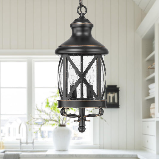 ALLGOT Outdoor Pendant Light for Porch,17.5 Inch Tall Farmhouse Pendant Lights, Outdoor Hanging Lanterns, Anti-Rust Exterior Hanging Porch Lights, Waterproof Ceiling Lanterns with Seeded Glass(Black)