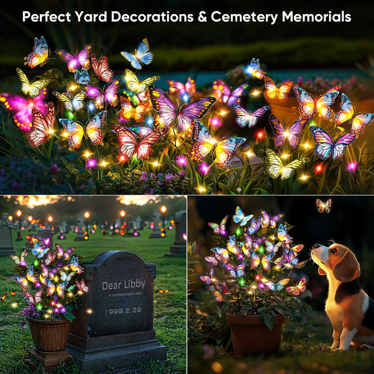 Solar Lights Outdoor Garden Decor: Gardening Gifts for Women Mom - 8 Pack 136 Butterfly Solar Lights with Colorful Bulbs - Outside Waterproof Christmas Decorations for Yard Patio Pathway Porch Lawn
