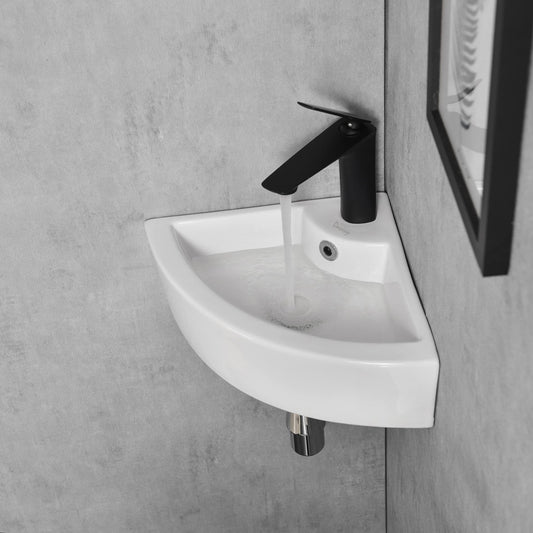 Davivy 18" x 13" Corner Bathroom Sink with Pop Up Drain and Installation Kit,Wall Mount Corner Sink,Ceramic Vessel Sink,Small Corner Sink,White Vessel Sinks,Small Vessel Sink for Bathrooms