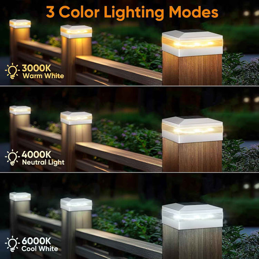 Solar Post Cap Lights - 12 Pack with 72 LEDs, 3 Color Modes, Waterproof for 4x4 Fence & Deck