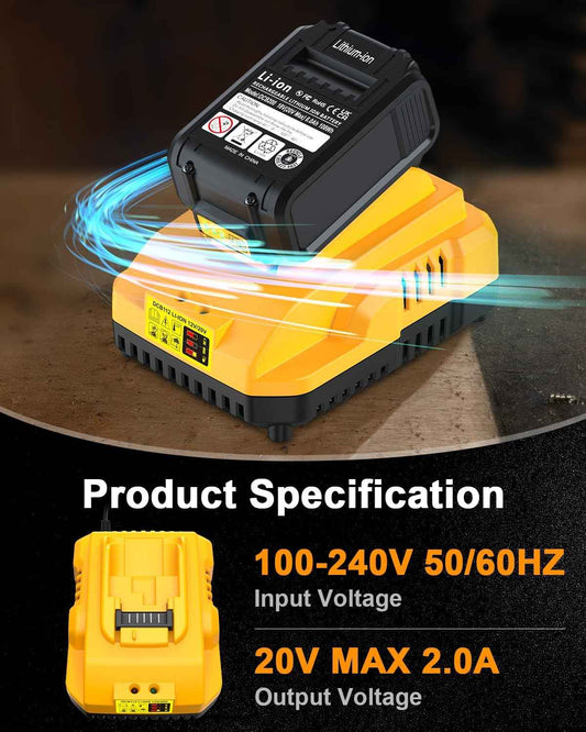 2-Pack Dewalt 20V 6.0Ah Battery Replacement with DCB112 Charger Station - Yellow